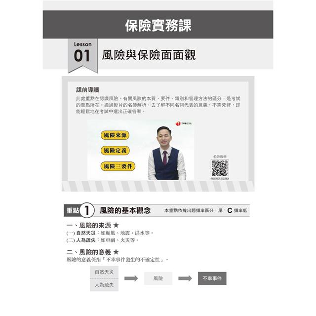 作者親自錄製影片,針對人身保險錄製課前導讀,並根據內容各處重點作講解,透過詳細的影音教學,學得更快、學得更好!
