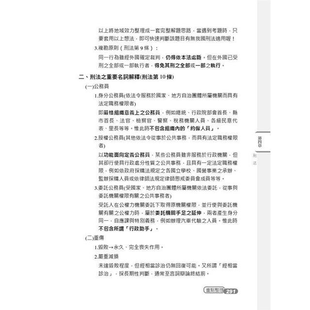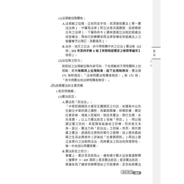 3.至於其餘法學類科,不妨也利用本書的重點法條整理,將備考精力分配於具有高回報率的法條考點,方為長期備考的最佳手段。