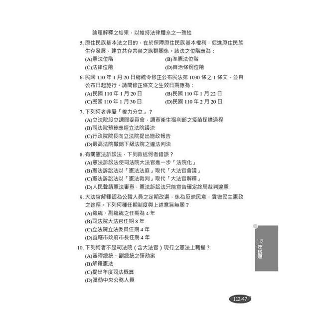 ★收錄109至112年法學大意試題共12份,100%題題詳解!