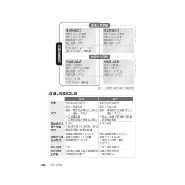行政法概要向來就以「概念抽象、範圍廣、內容深淺不一」而聞名。三民輔考濃縮行政法之「基本概念原則、行政組織法、行政作用法、行政救濟法」等四大編內容,30章重點深入淺出。難懂的艱深概念附有「補充說明」,讀者可隨時用來理解內文。易混淆的觀念更使用了表格做統整歸納,透過互相對照,毫不費力就釐清概念。