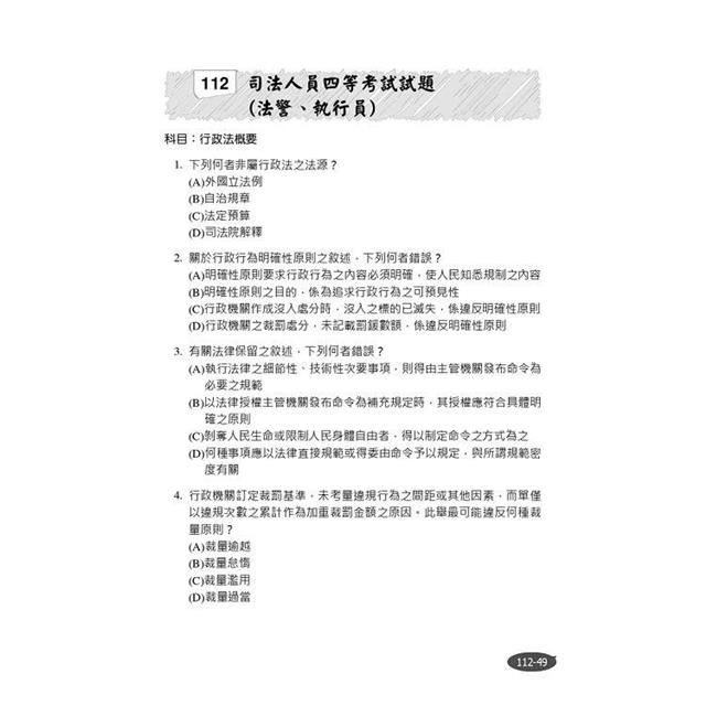 本書收錄111~112年公務人員高等考試三級(高考三級)、公務人員普通考試(普考)、地方特考四等、司特四等考試(法院書記官、法警、執行員)試題共9份,100%題題擬答與詳解。申論題具備考點層次解析,選擇題教讀者如何判斷條文選對選項。三民輔考欲憑此書,讓讀者面對選擇題,箭箭中鵠;面對申論題,解題思路澎湃縱橫,不絕於卷上。