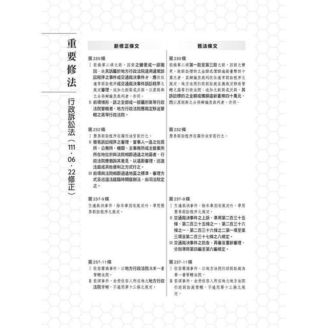 新修條文常為重要考點,應養成隨時關注修法動態的習慣,藉此培養判斷命題趨勢之題感。例如111年6月22日修正公布之行政訴訟法,其施行日期為112年8月15日,新修法之行政訴訟制度該如何運作、新舊法間適用上之差異、以及其立法理由,應為來年的命題新寵,不可不防。