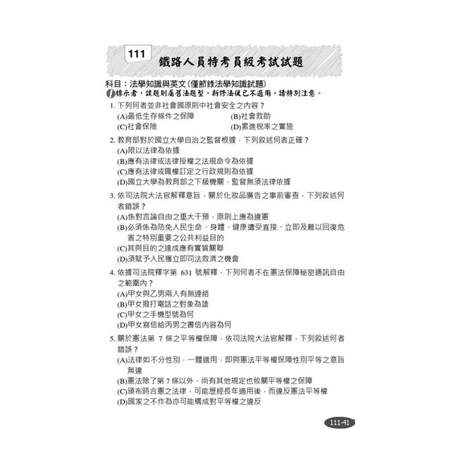 111年一般警察三等、鐵路高員三級考試試題