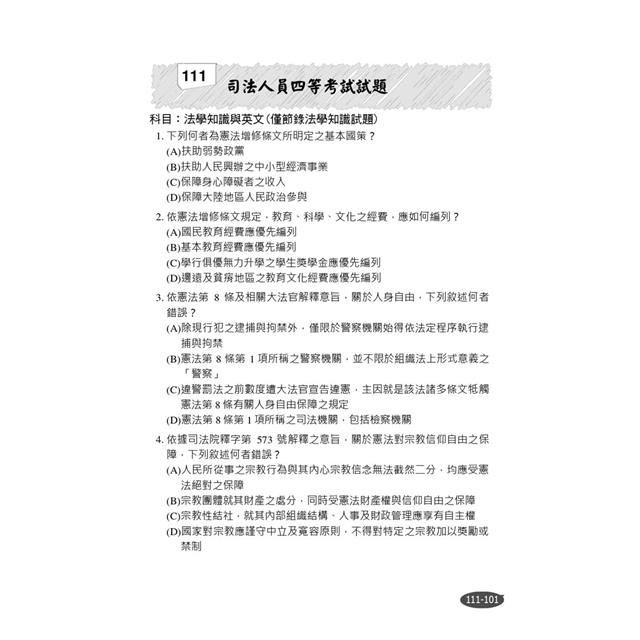 111年司法人員四等考試試題