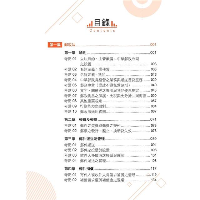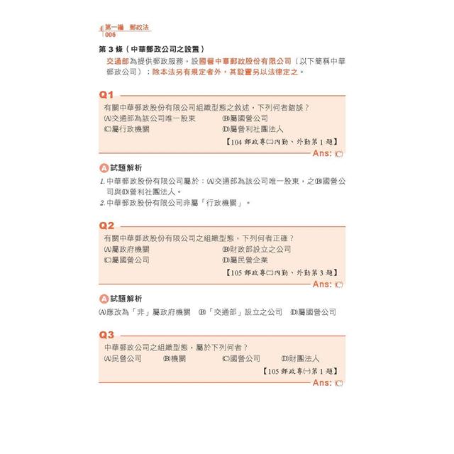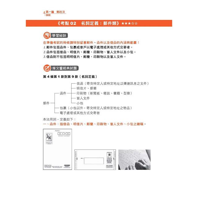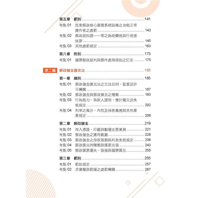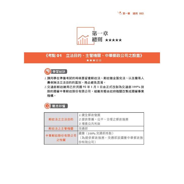 透過關鍵字句的學習以及題題詳解的實力養成,協助讀者針對「郵政三法大意」達到「點」、「線」、「面」的學習,不僅能夠在測驗題獲取高分,更能夠進一步實現申論題作答的實力養成,幫助讀者在國家考試當中金榜題名。