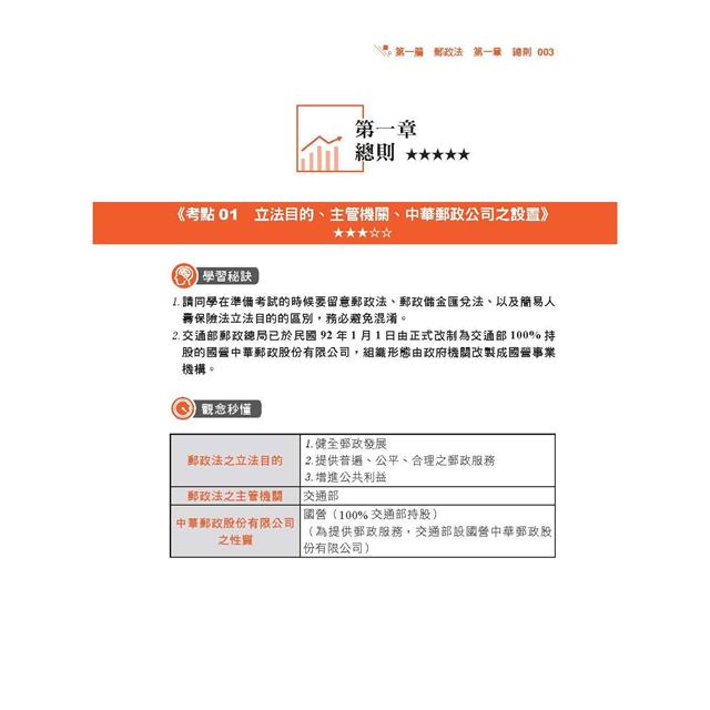 考點01 立法目的、主管機關、中華郵政公司之設置 / 003