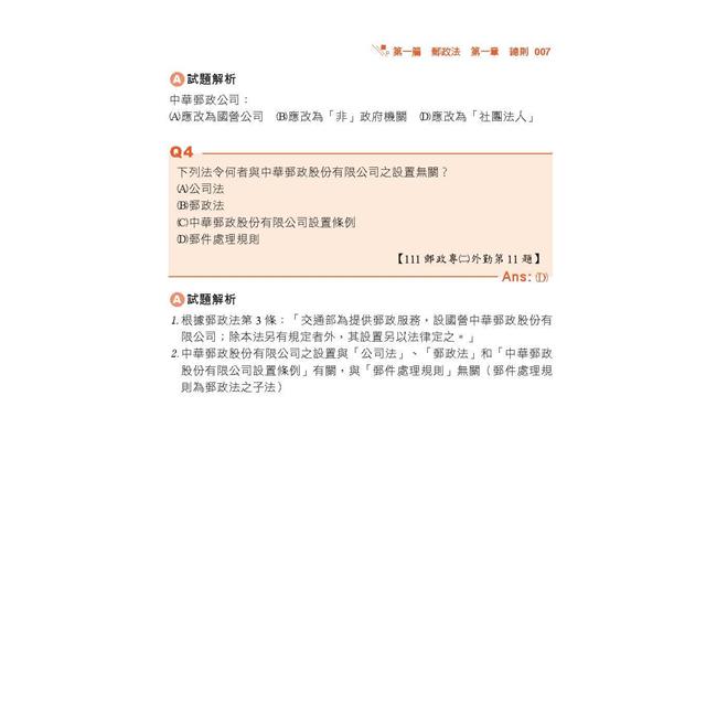 考點04 中華郵政得經營之業務與遞送普及服務 / 029