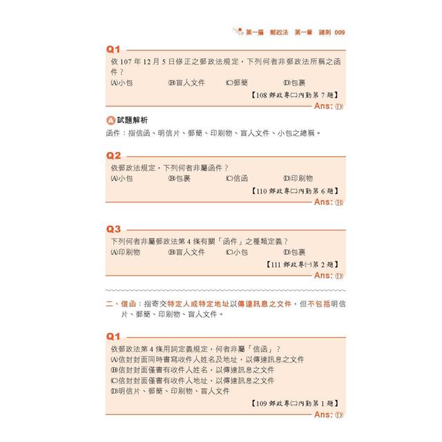 考點01 郵件種類/明信片、郵簡 / 193