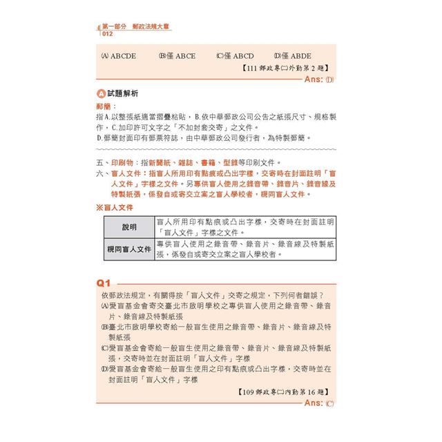 考點01 航空、限時、可追蹤函件、快捷郵件 / 217