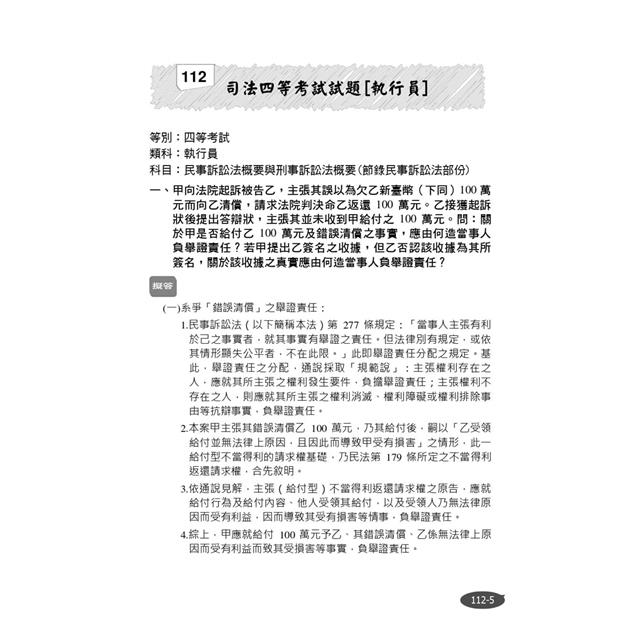 ★收錄100至112年民事訴訟法概要試題共19份,100%題題詳解!