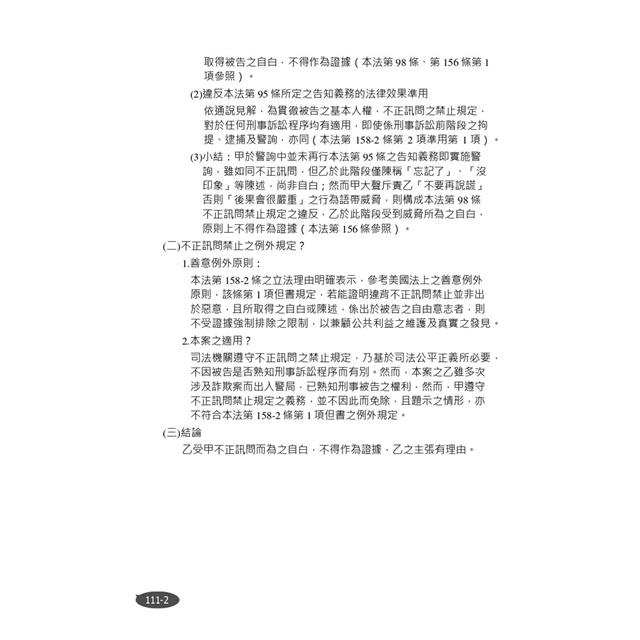 3.關於刑事訴訟法之備考也須注意各家學說、重要實務見解與法律座談會意旨,書中將其精簡濃縮,讓讀者把有限的記憶力花在刀口上,快速判斷具有命題實益之爭點。