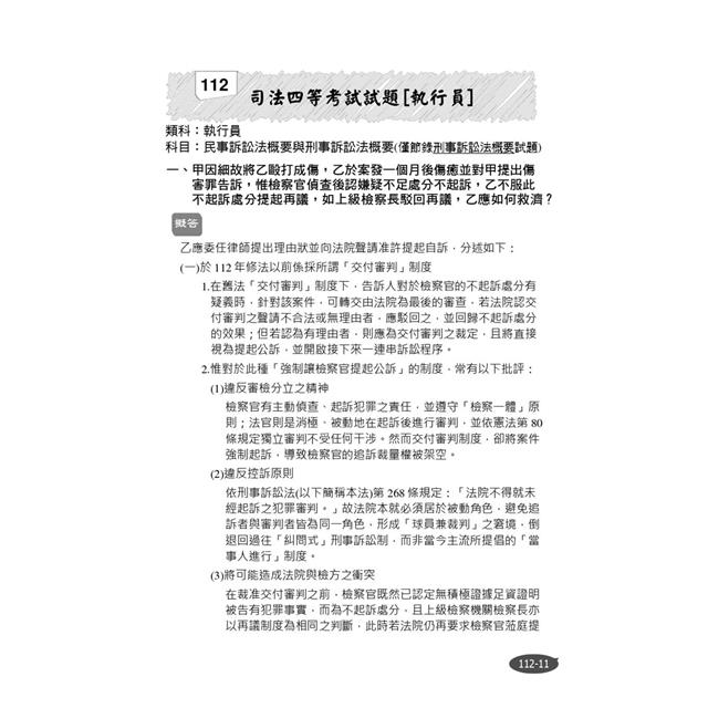 ★收錄108至112年刑事訴訟法概要試題共20份,100%題題詳解!