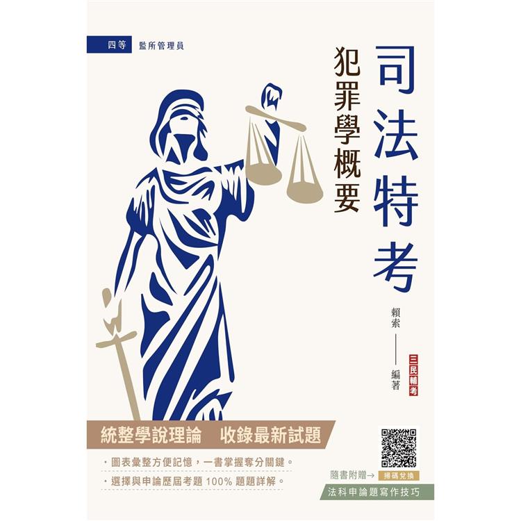 本書(書號:9786267353677)由業界名師賴索精心編著而成,不僅彙整相關犯罪學學說與著作,並收錄歷屆考古題且附上詳解,書中內容多處搭配圖表歸納,化繁為簡,讓讀者可以快速掌握學習重點與考試方向,在家自學最有效率,同時排除應試障礙,輕鬆取得高分!