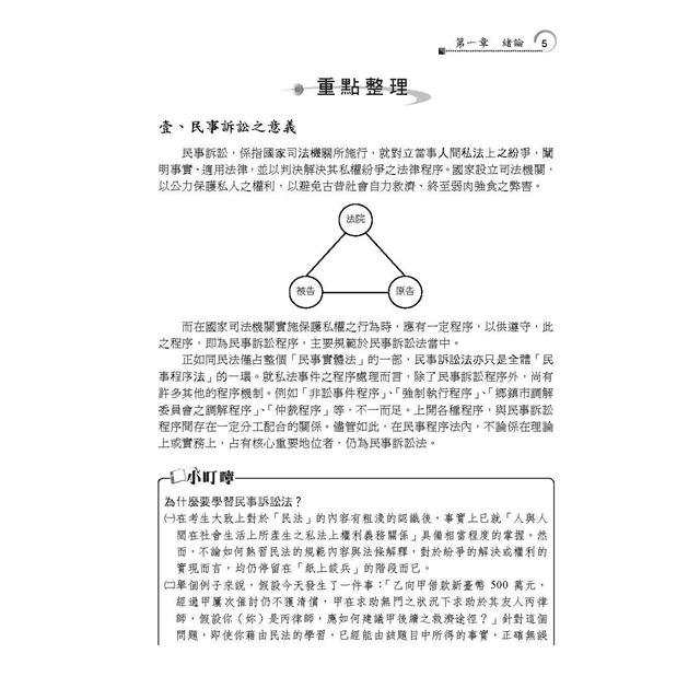 ‧以淺顯易懂的方式,讓初學者在最短時間理解艱澀的民事訴訟法!