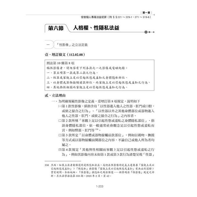 是的,2023年「中華民國刑法」成為修法事主之一,本次改版的第一個亮點即在於此,包含刑法第302條之1、刑法分則第28章之1、刑法第339條之4第1項第4款等規定的介紹。其次,與刑法相關的憲法法庭判決也不遑多讓,不斷增生,憲法法庭112年憲判字第8號判決、憲法法庭112年憲判字第11號判決即為適例,這次改版也一併收錄。當然,刑法少不了學說與實務的對話,這些交鋒往往是命題熱點,筆者照例在各章節予以增補,並繪製許多圖示輔助記憶。另外,本書的章節也有更動,從原本的兩章調整成四章,方便讀者查找和複習。