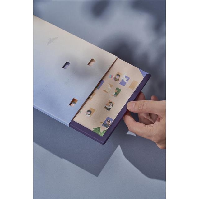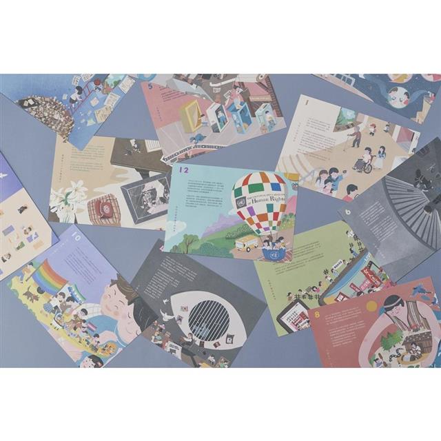 桌曆包含紙製立架與13張月曆卡片。卡片採雙面印刷,一面為人權紀念日插畫搭配知識性內容,另一面則為月計畫,可以自由選擇展示方式。紙張選用采石紙,具有挺度且顯色佳,可作為認識各式人權議題之教學卡片使用。
