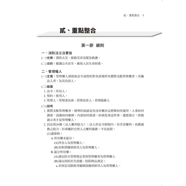 目前考選部公告應考範圍內容實在太多、法條實在繁雜,面對消防安全類考生而言「消防法規」一定是必考的考科,甚至公職考試也要考而且法條不定時修正公告,莘莘學子的方寸、腳步都亂了;因此,我們配合考選部頒佈『命題大綱』努力將消防法規做了適切的調整後呈現給大家,期望能充當考生們在茫茫大海中消防法規考科的燈塔。