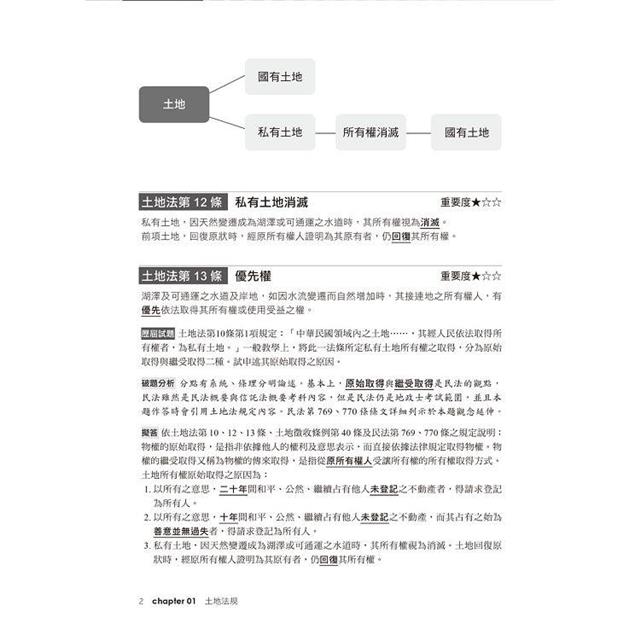 內容依主題式條列編寫,並逐條解析條文,標示必背重點,以口語方式說明條文規定,幫助迅速理解條文結構與邏輯。各條文之下穿插與條文相關的歷屆試題,便於時時檢視學習成果,輕鬆抓到要訣。