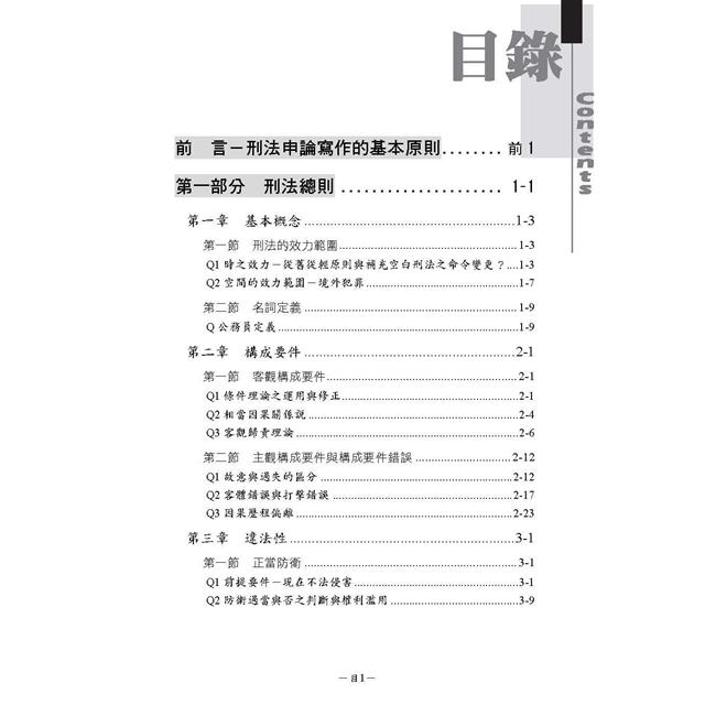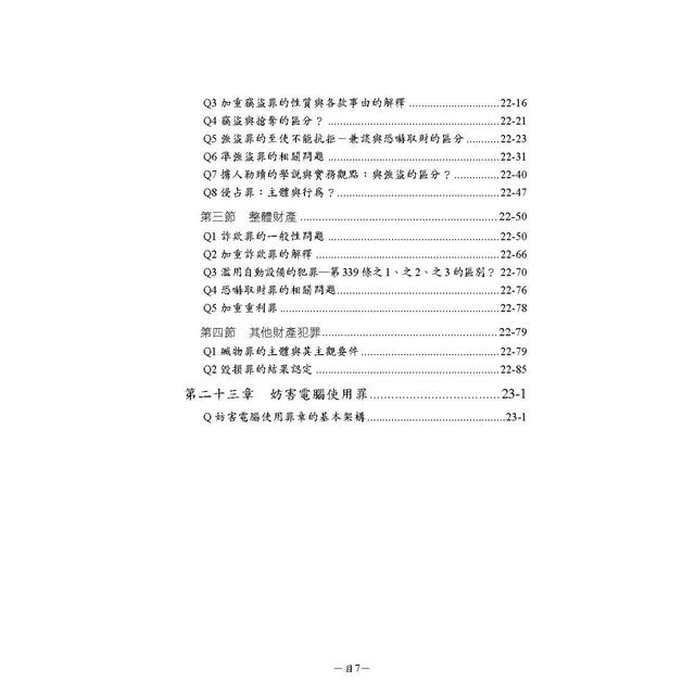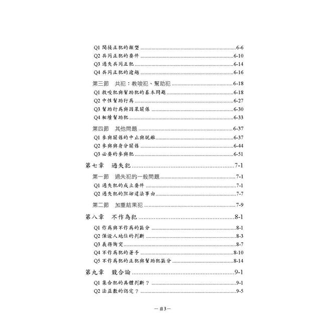 很快的一年又過了,又來到了一年一度改版的時刻了,這次的改版,一樣是例行性的題目增刪,增加的題目共計27題,原稿34頁,約3萬2千字,都是這一年來新的國考考題;同時因為從明年(2024)起,高考行政類廢考刑總,因此這次改版也刪除了不少高考行政類過度困難的考題,讓這本書更能符合一般四等考試族群的需求。另外,也有部分題目配合法律的增修(例如:妨害性隱私及不實性影像罪章)以及新的法律見解(例如:112憲判字第8號、免除罪責的緊急避難)加以改寫,讓舊有的考題能跟上最新的法律見解。