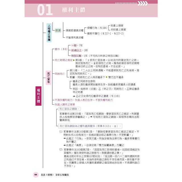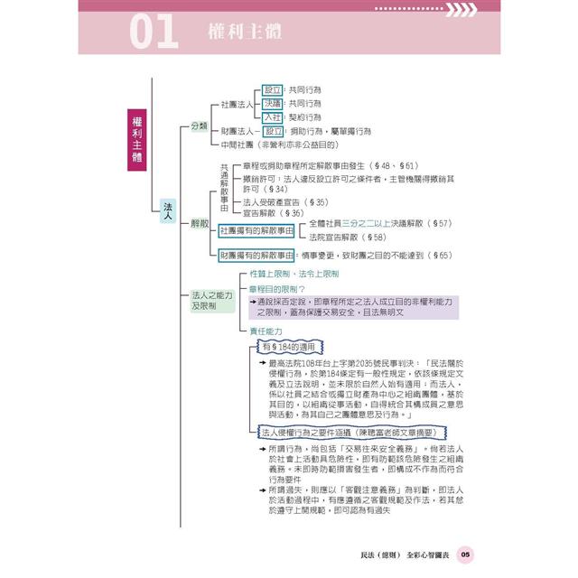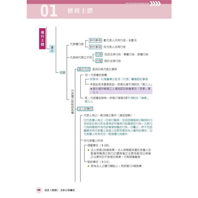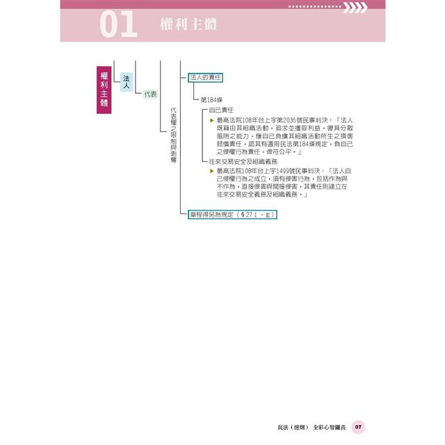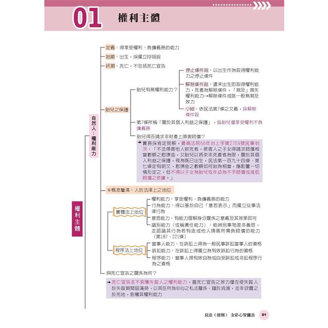 1.採心智圖表方式,有效建立體系的認識,使民法(總則)的學習獲致最大成功的路徑