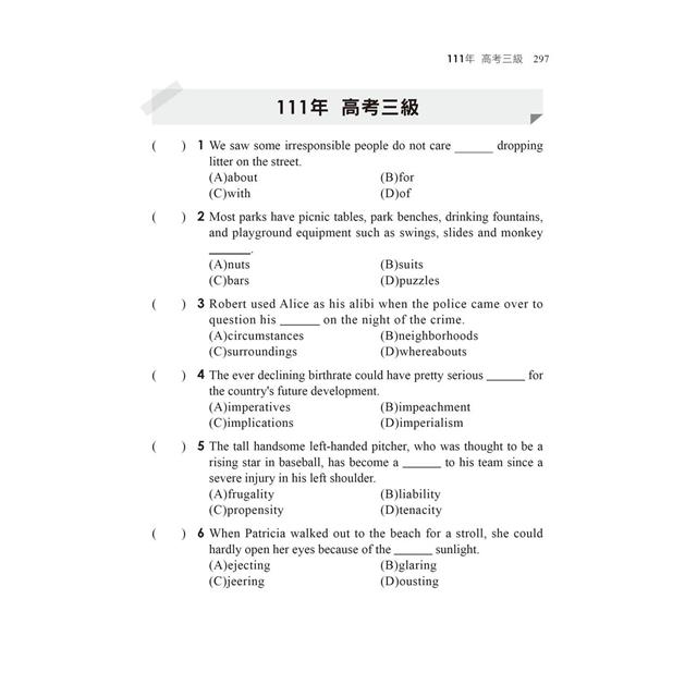 公職考試的英文科試題雖和托福較相似,天南地北無所不考,但從觀察歷屆試題中不難發現,考題中尤其是克漏字和閱讀測驗的出處多為英語的報章雜誌或學術期刊等,並非憑空造題。這意味著公職英文考試範圍雖然廣泛,但依稀仍有出題脈絡可循,像是這些報章雜誌等來源有一個共通點,便是會把焦點聚集在國際間重大新聞或議題,而本書編寫也是依循此一範圍,讓你能夠有一本專攻高普考、地方特考及司法特考的專門題庫,省去你苦苦尋找適用練習題庫的時間!