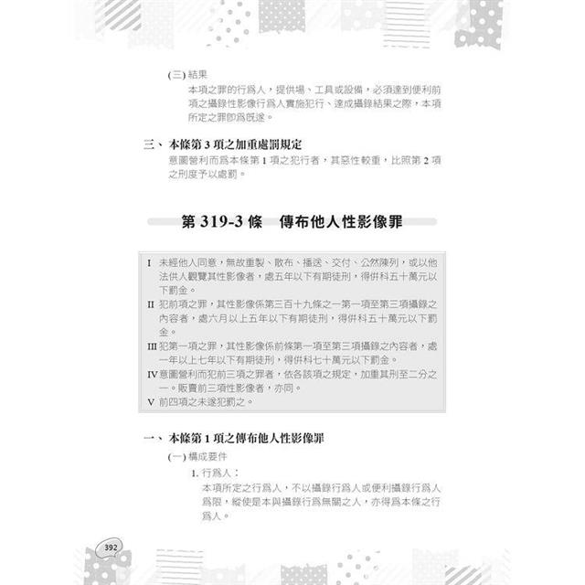 多數人覺得最難準備的科目之一,當初因為對刑法挺有興趣,準備方式是先念完總則的相關條文及理論,當然此時也會連結到分則的條文,就一起對照著看順便記憶背誦,其中錯誤的部分應該是最繁雜的地方要好好搞懂,再來分則主要就是理解及背誦法條構成要件,法條我是只背了歷年來相關重要條文殺人、強盜、搶奪、強制性交…等等,這些一定要背。以現在申論兩題的考法通常都是一題總則一題分則,若沒時間可以朝總則的部分專攻,畢竟分則條文多也不好抓出來。
