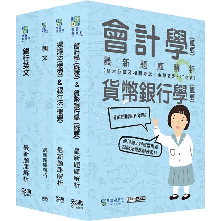 全面導入線上題庫 2024金融基測/銀行招考題庫套書:國文+英文+會計+貨幣銀行學+票據法+銀行法