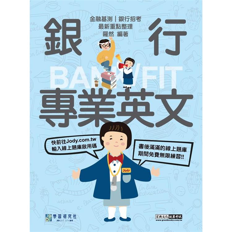 然而即使不願放棄,面對共同科目的一大困難在於,共同科目經常給人抓不到範圍、不知從何準備起的感覺,英文也是如此。因此,基於這樣的考量,筆者特別針對研訓院主辦之銀行英文考試編寫本書,希望能幫助考生以更有效率的方式來準備英文。