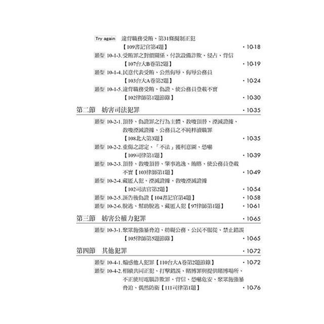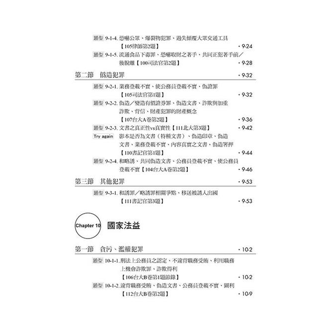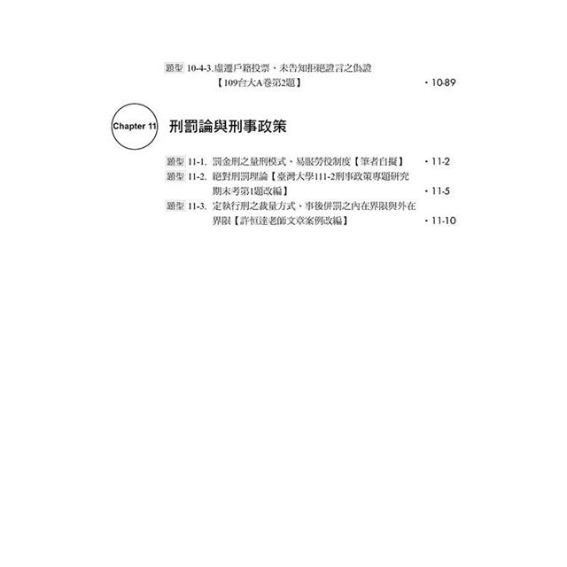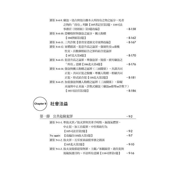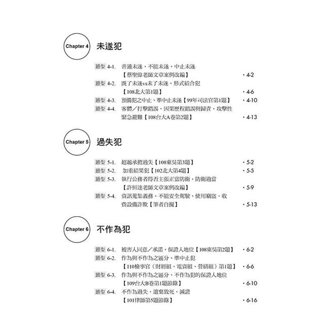 在這本書裡,我們希望將過往無論是在研究所讀書會或國考讀書會出題時所遇到的刑法爭點,盡可能地詳細呈現給考生們,以便考生掌握及複習;同時,我們同樣認為,將所讀的知識漂亮地輸出到考卷上對於考試而言至關重要,因此,我們也將透過本書一百有餘的題目,親自向各位考生演示我們自己遇到各種不同的爭點時會如何鋪陳、解答,並附上我們的解題小技巧。這本書所蒐集的題目範圍橫跨司律考試、公務員考試、法研所考試乃至於學校期末考試等,我們期待能透過這本書,盡量為各路考生提供棉薄的助力。
