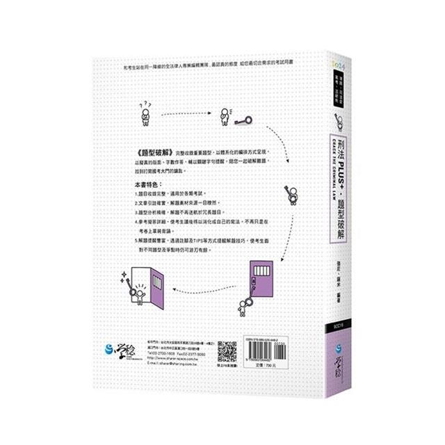 5.解題提醒豐富,透過註腳及TIPS等方式提醒解題技巧,使考生面對不同題型及爭點時仍可游刃有餘。