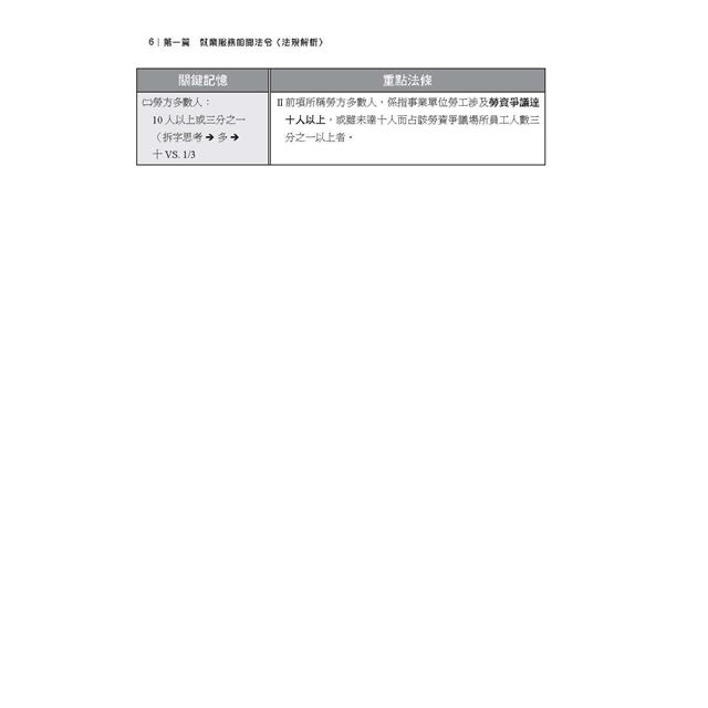 我從來沒想過,人生有一天會編排一本考試用書,還成了勞動法令 的老師,現在看到法條時的反射念頭就是「這個法條還有什麼方便的記 憶技巧?」很累人但有很意思!尤其看到很多人在準備考試過程中,有 些啟發和頓悟,突然覺得這本書的出版很有意義,連我都覺得,「如果 早一點知道這些方法,不知道有多好…。