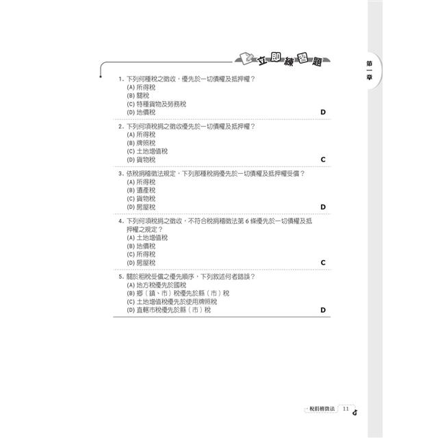 內文各段落穿插「立即練習題」,方便讀者讀完立即測驗。每個章節後面附有精選試題,研讀成果即見真章。透過試題演練即時呈現未讀透的盲點,讓讀者真正掌握關鍵。