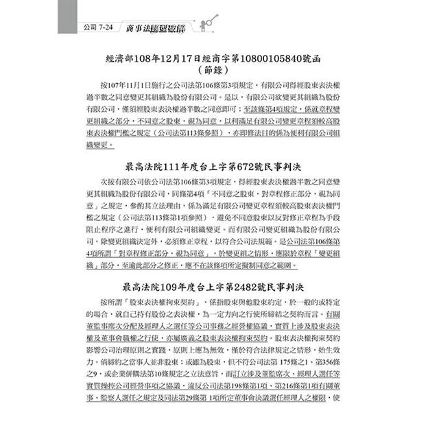 題型3-5-1轉投資限制、股東查閱權及股東會決議瑕疵【108司律第1題】