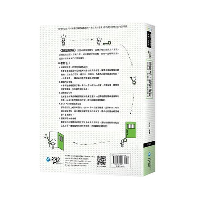 部分題型附上相似題型Try again,多一次練習機會,並附上Break Point,剖析關鍵考點,在出題老師掌握主動的情況下,讀者也能掌握破發機會,拿下勝利!