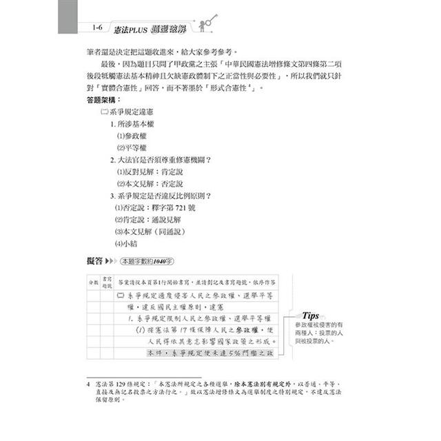 4.再多一點答題技巧的提醒(這樣子才能夠讓備考資源比較不充足的同學能夠在學習憲法的同時,順道學習答題技巧)。