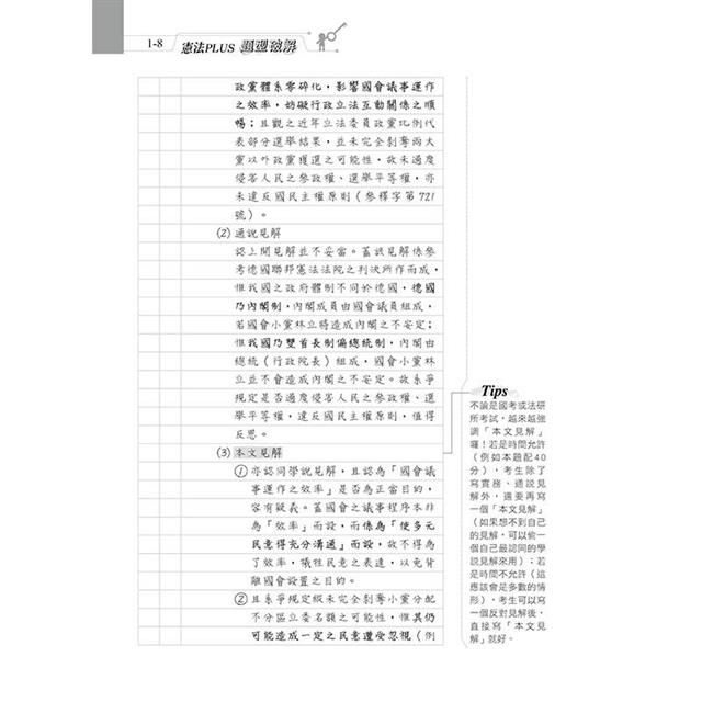 由淺入深,絕對足以供大家應付法研所的考試。以簡御繁,掌握公法的任督二脈(參作者序),向老師證明,我們的法理基礎就是比其他同學深!