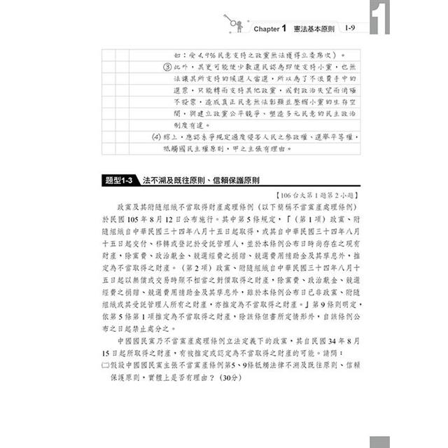 除了程序規定以外,在實體違憲審查的部分,為了因應裁判憲法審查(具體違憲審查),舊題新解,幫助讀者在新制下,獲取高分!