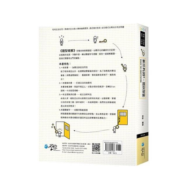 由衷地感謝各位同學的支持,讓這本書能夠被更多同學看見,並且有三版的機會。雖然市面上已經有很不錯的憲法解題書了,但某種程度上這本書已經符合我當初的期待了——能提供同學更多的選擇,並且能夠試著用不同的角度學習解題。我認為本書與坊間其他憲法解題書相比的特點如下: