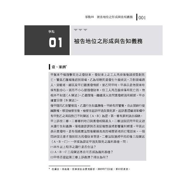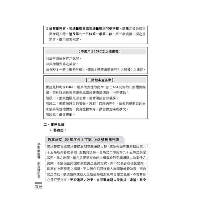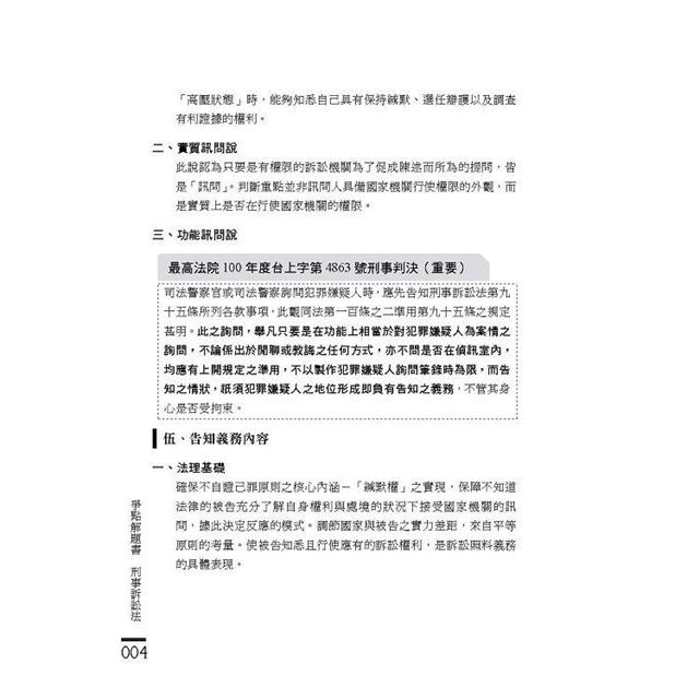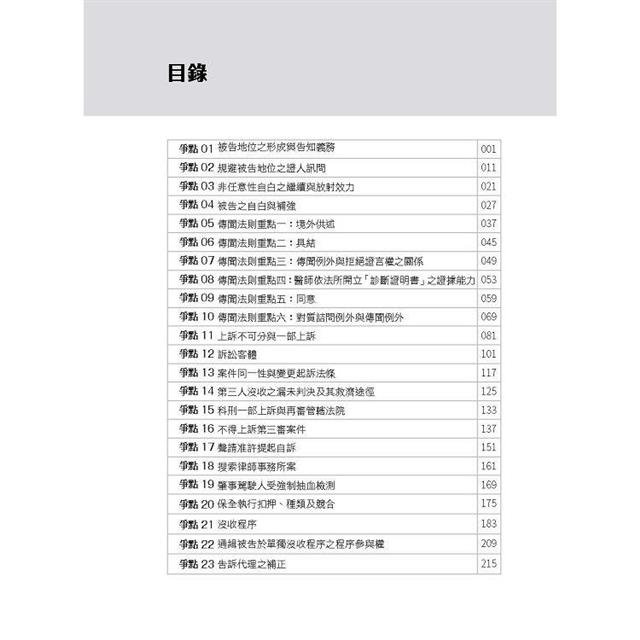 本書適用於對於刑事訴訟法有一定認識的讀者,可以作為銜接傳統爭點、並延伸至新的學說、實務見解的橋樑。另外,就本書搜集、整理的學者文章,除了摘錄法律爭議外,對於案例事實、實務見解也都有整理在內,並不是單純的介紹法律爭點,而是更完整的呈現爭議所在及不同角度的看法。最後,衷心希望讀者可以藉由這本書,對於刑事訴訟法有更深入的理解與認識,也祝福各位都能金榜題名。