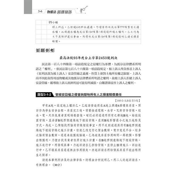 題型 3-1-2 管線安設權之侵害與鄰地所有人之損害賠償責任【105台大B卷第3題】