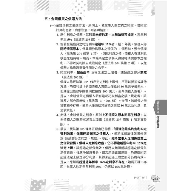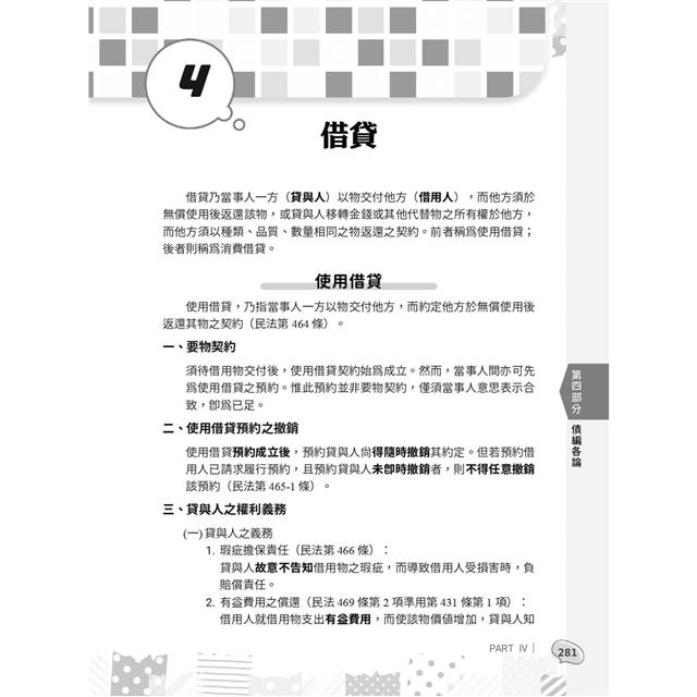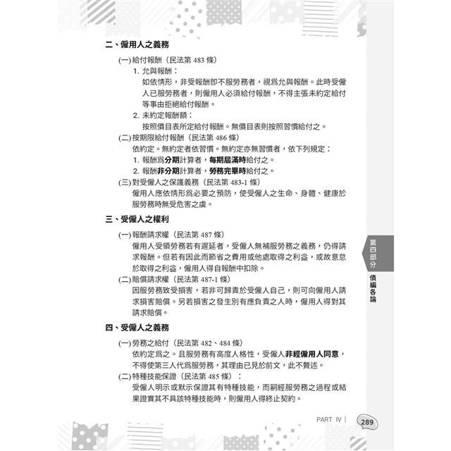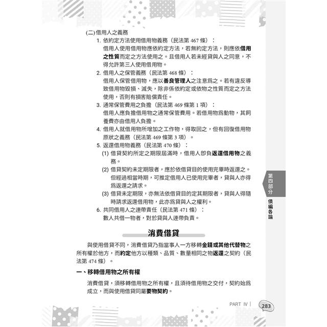 本書在常考重點之條文,加入實務案例以及歷屆試題所設問之情境,以舉例言之的方式,予以單刀直入的剖析,協助讀者理解條文規範意義與考點內涵。每單元之後亦附有精選試題,可透過考題練習檢驗自我學習成效。縱使民法條文上千條,亦能以簡馭繁,充分掌握考點、盡取上榜奧義。