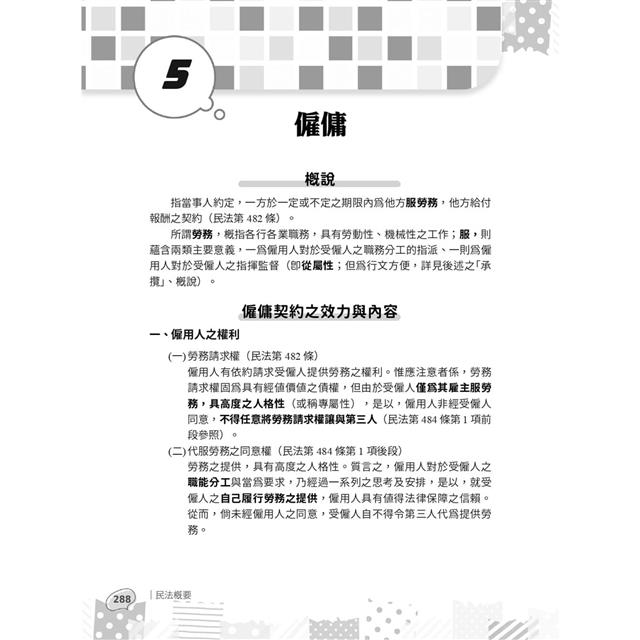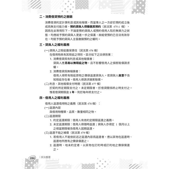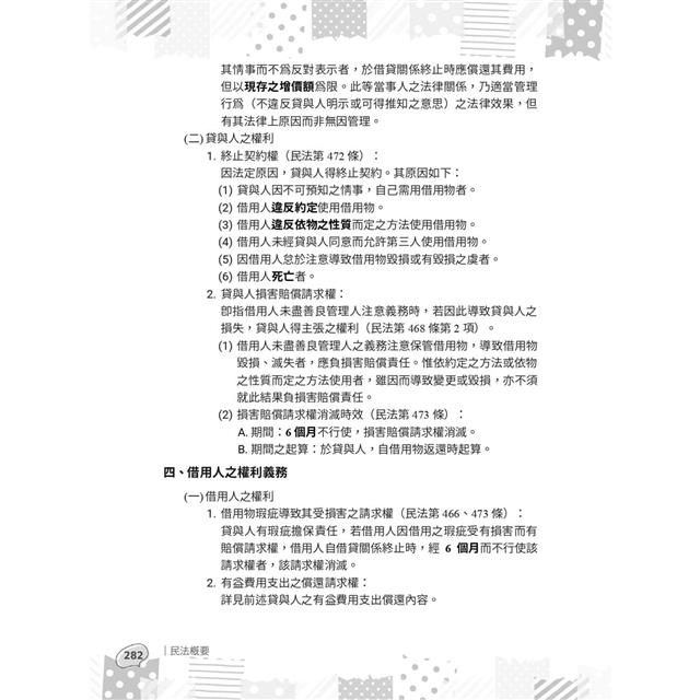 民法概要向來就以「專有名詞多、範圍廣、內容深淺不一」而聞名。本書濃縮民法總則編、債編總論、債編各論、親屬編、繼承編的內容,簡要說理、深入淺出,難懂的專有名詞迎刃而解,有助於考生高效學習、藉由概念理解而令記憶長存。