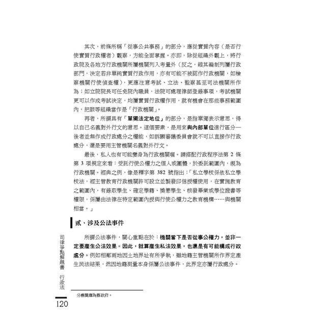 首先,什麼是最重要的部分?相對來說,歷屆試題的爭點,應該是比較客觀的基準;因此,我把歷屆司律行政法試題的爭點打散,按照教科書的體例重新編排,並在爭點前面放入解答必備的知識。
