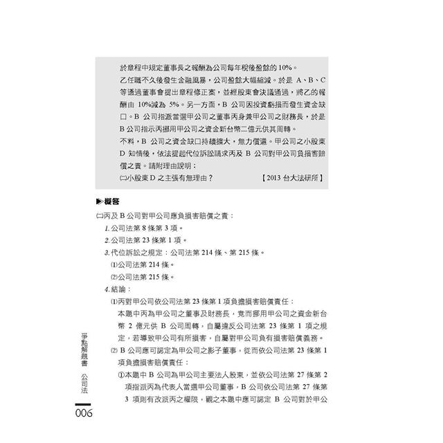 深入了解公司法爭點,作為作答考生作答參考