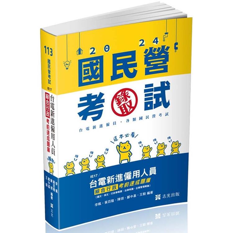 ◆本書為台電新進僱員綜合行政打造之專書,包括國文、英文、行政學概要、法律常識、企業管理概論五科,為提供考前最快速掌握重點的必備工具書。
