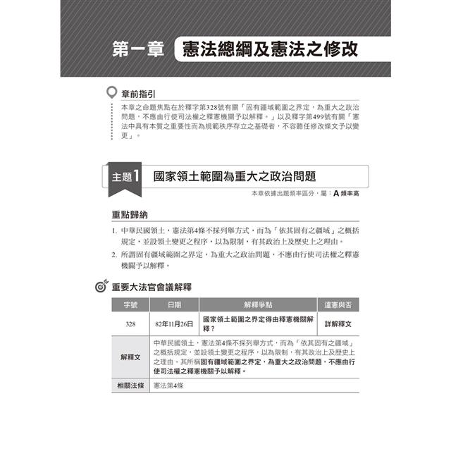 第14章則為憲法訴訟法施行後,憲法訴訟裁判之重點節錄與試題觀摩。