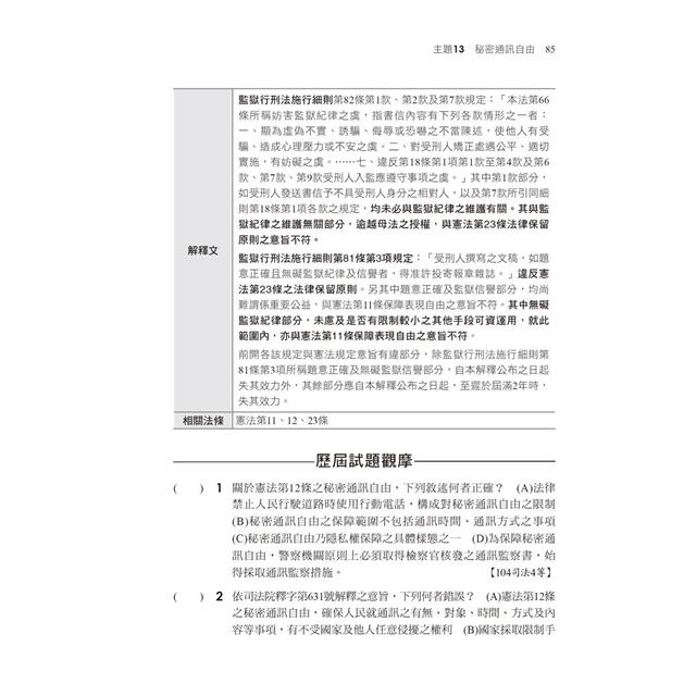 2024【主題式條目分類】超好用大法官釋字+憲法訴訟裁判(含精選題庫)(高普考/地方特考/各類特