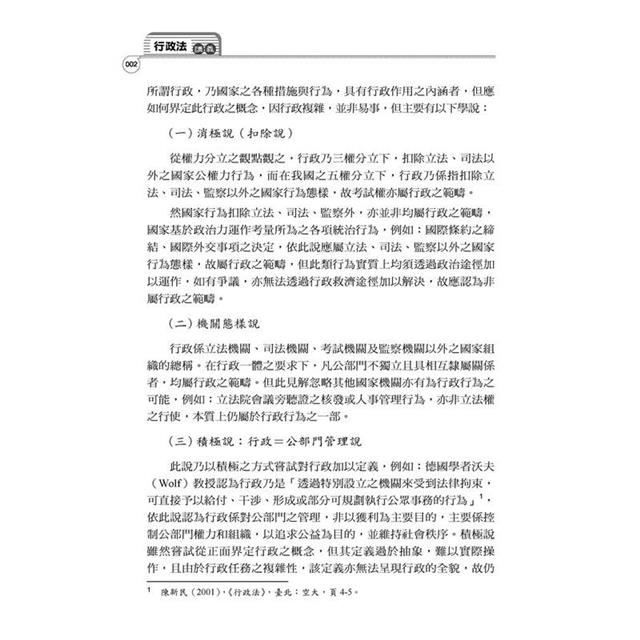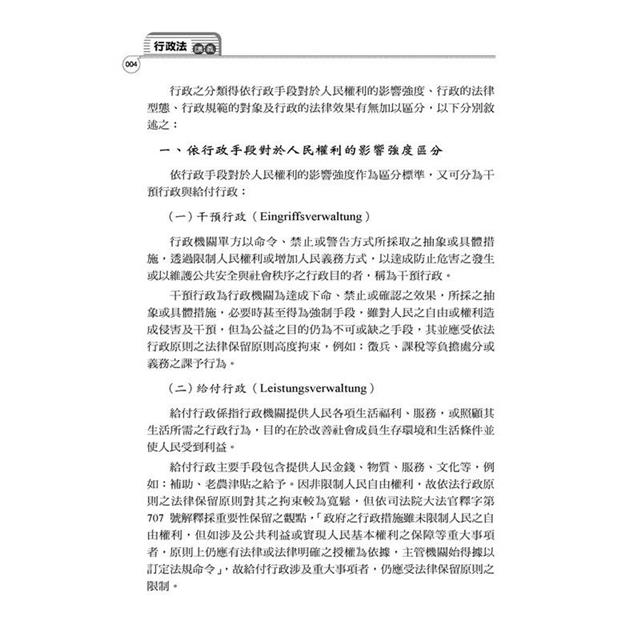 本書每章節之首,均有一案例事實,貫穿整個章節,並於章節之末附有案例事實解說,使讀者能透過考題驗證本章所學之概念,而每章節附有之相關考題,更方便讀者進一步練習。本書尤其值得行政法入門學生及實務工作者一讀。
