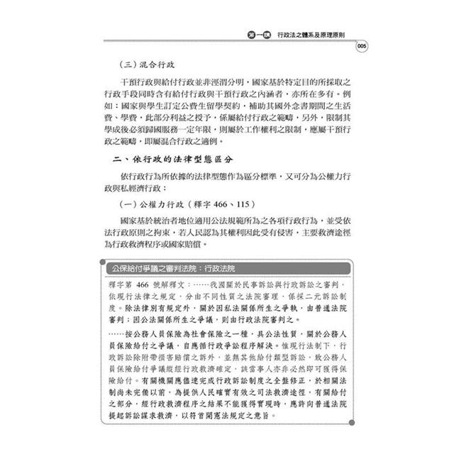 行政法講義七版於2022年出版後二年間,國內相關重要行政法律及修正草案快速修改施行,例如:行政訴訟法、國家賠償法等修正,加上憲法法庭的新裁判(例如︰111年憲判字第11號判決)、最高行政法院最近裁判變化趨勢(例如︰解聘、不續聘教師之行為性質),使得本書都有再行精進之空間。趁付梓八版機會,爰全面加以修正,仍以本土、精要及案例三原則為圭臬,修正許多錯置之表格及錯漏字,並更新統計資料,希望能維持本書之學術生命,作為合格之大學教科書。