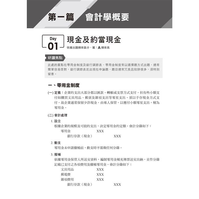 賦誠老師已經將記帳士證照的重點濃縮成21天可以複習一次的篇幅,並將繁雜的法規作好系統整理,重要學理內容更是使用表格比較,讀來快速又有效率。